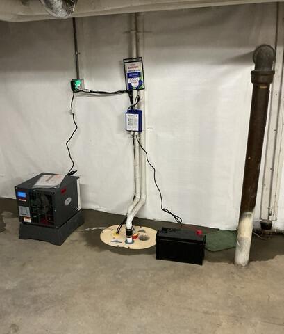 Soon after, it would be time for one of our Foremen, Garfield Sanderson, and his crew to install this job. They installed our WaterGuard drainage system to capture water seepage from the walls and direct it to our sump pump system. Two sump pumps were installed - one was our TripleSafe and the other was our SuperSump Plus.