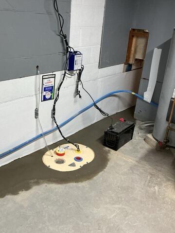 Once the date was set, one of our Foremen, Chris LaBaire, and his team went to install this job. They installed our WaterGuard drainage system around the entire perimeter of this basement. This drain is below the floor slab. They also installed our TripleSafe sump pump which collects the water from the basement. Finally, they installed our IceGuard Discharge Line which is an anti-freeze fitting that ejects water away from the foundation in the event that the sump pump discharge lines freeze or become clogged. This homeowner can now be worry-free with our waterproofing products in place!