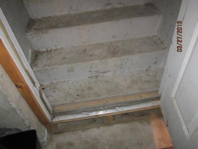 The hatchway stairs leading to this Mansfield Center, CT basement had water leaking into the area. This is a common problem in Connecticut basements as the doors at the top are often not truly sealed from the elements. To keep it dry, our team installed our trench drain at the base of the stairs. This open grated drain collects water into the perimeter drainage systems and directs it out of the basement. This will keep the basement dry for years to come.